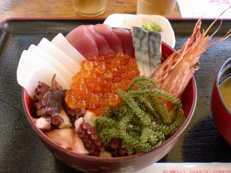 お昼は漁協にあがった超新鮮な「海人丼」(^○^)その場でさばいてくれるんです!ちょ〜〜おいし〜〜〜本場の海ぶどうに感激です☆
