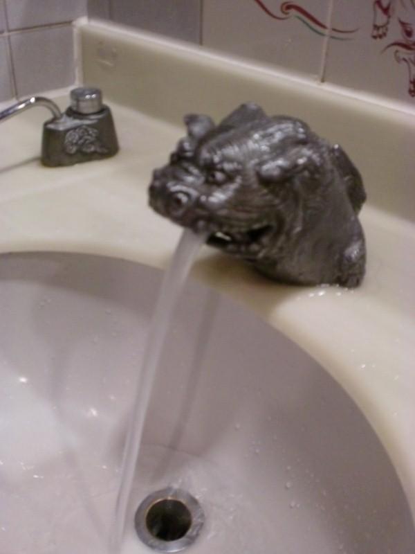 ↑お手洗いがシーサーで感動 笑 ラストの写真を飾るのは「飛行機でふくれあがったポテチ」