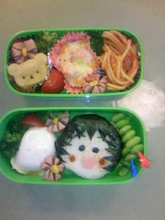 曽根です。キャラ弁作りました。もうネタがなく、簡単なのは?といったらちびまる子ちゃんですよね。あっれー実際、絵にかくと、全然知らない子になる。ブルーレイに撮っておいたのを見ながら作りました。あれー(@_@)まるちゃん、ヘアースタイル変わってるー!皆さん、知ってましたぁ?丸くなってシャギーがはいってる!本当の髪だとラクだけど、のりは、分けわかんない。こんがらがっちゃった。