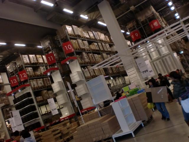 IKEAは、初めに展示場があって、自分の欲しい物の番号をチェックして、それから違う階にある、倉庫みたいなとこで、欲しい物の番号を探し当ててお買い物します