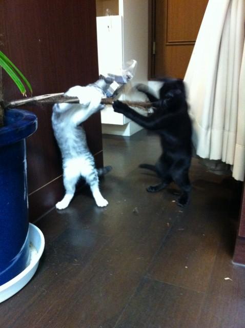 すごい勢いで遊びまくってました。疲れたのか、その後は二人仲よく休憩