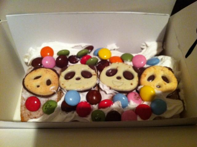 いつもお世話になってるKさんに、ケーキをプレゼント!!って思ったのですが、歩いてる間に寄っちゃったみたいで、生クリームが箱にべっちゃりでした 笑