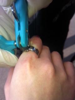施術2時間、、、私のリングは太くて厚いため、なかなか切れません。。。作業は難航し最終的に島田消防署に助けてもらいに行きました