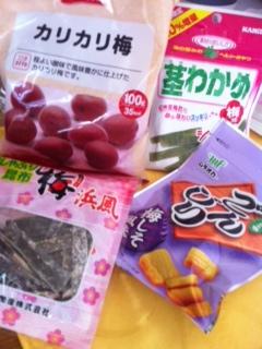 1位、茎わかめ(梅しそ味ベスト)!!!2位、ごんじり!!3位、おしゃぶり昆布梅味(硬いタイプ)とカリカリ梅 5位、米酢!!(写真にはないですが)