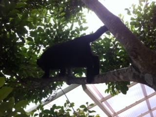 あくる日、鳥さんの巣には鳥がいなくなってしまったものの、ジオンくんは覚えていたらしく、果敢に木登りをはじめました