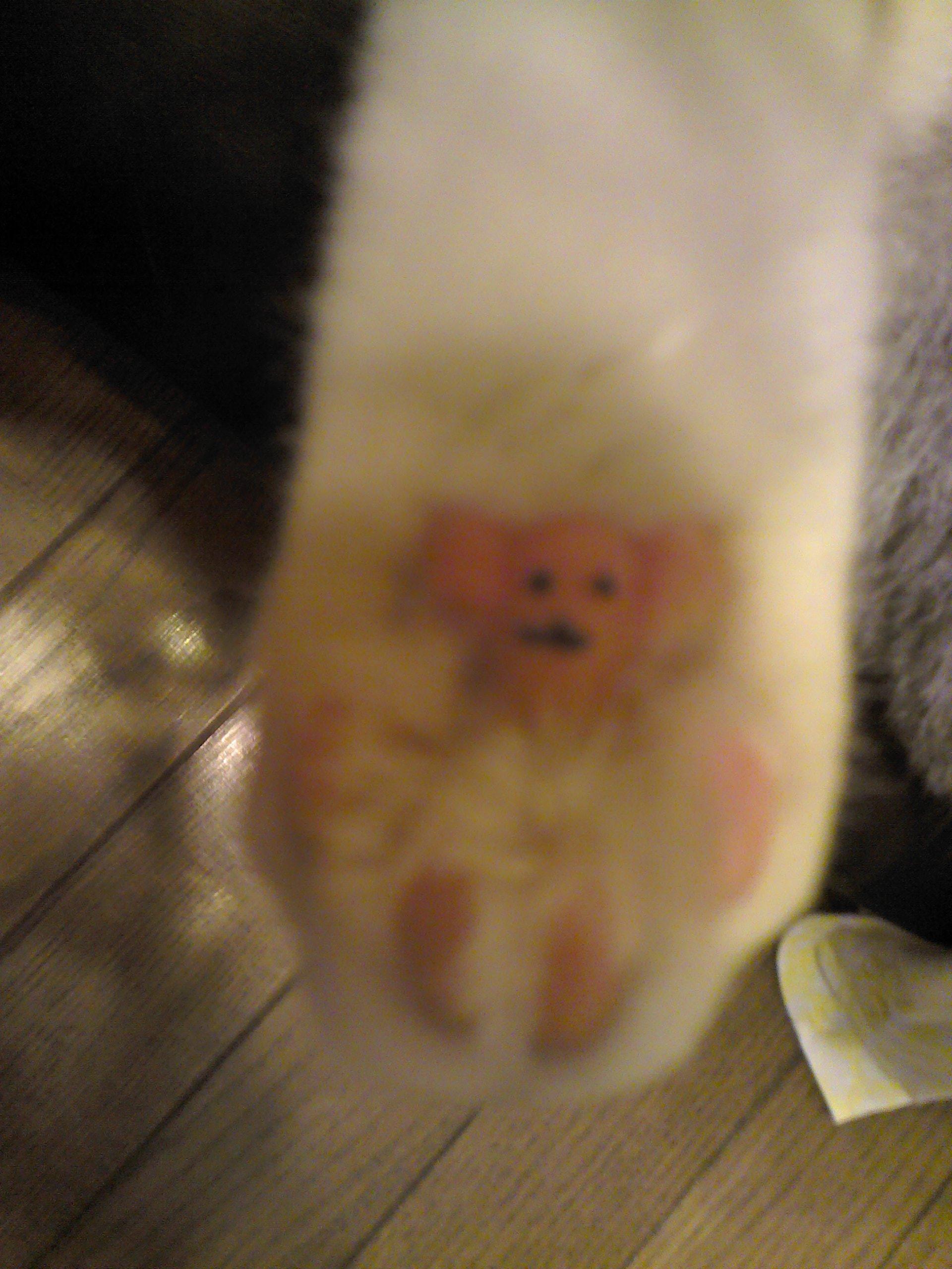 曽根です。うちの、中1のお姉ちゃんが、チャムの肉きゅうにお絵かきしちゃいました。